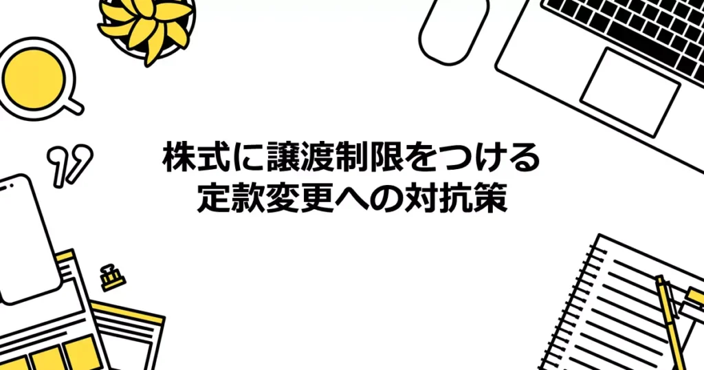 会社の発行する株式の全てに譲渡制限を設けるとの通知が届きました。譲渡制限株式となると株式の譲渡が自由にできなくなるので反対なのですが、どのような対抗策がありますか。 譲渡制限に関する規定を設ける定款変更阻止に向けた行動 譲渡制限に関する規... -